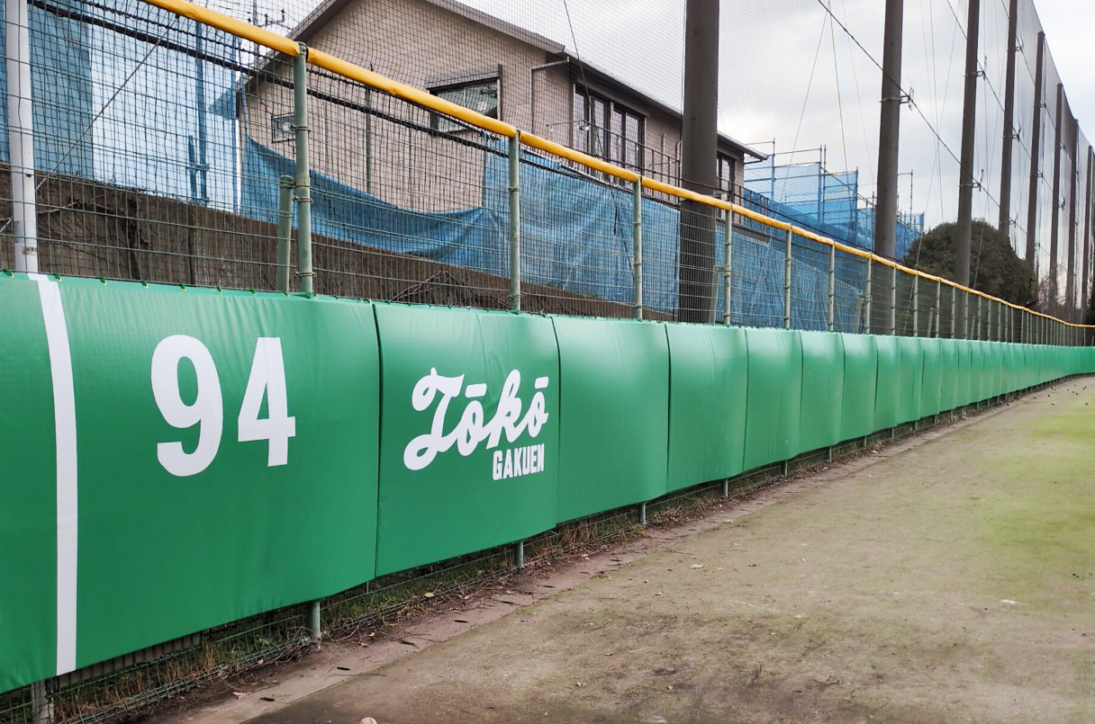 新しい防護マットが装着されたことで、野球場を使用する学生達も、安心してプレーすることが出来ます。桐光学園様、この度は防護マット製作のご依頼を頂き、誠にありがとうございました。今後、マルイチの防護マットが、怪我防止・安全対策に活躍することを願っております。