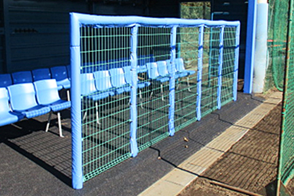 今回マルイチの防護マットをご依頼頂いたお客様は、神奈川県内にある大学様です。ご担当者様より「野球グラウンドのベンチ前に設置されている金網フェンスへ、安全対策用の緩衝材を付けてほしい」とご相談を受けました。