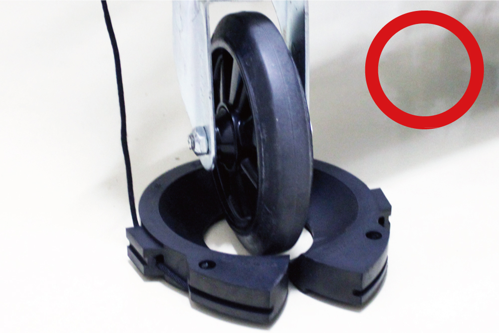 装着後は「リング内にキャスターが収まっているか」の確認を徹底して頂きますよう、お願い致します。