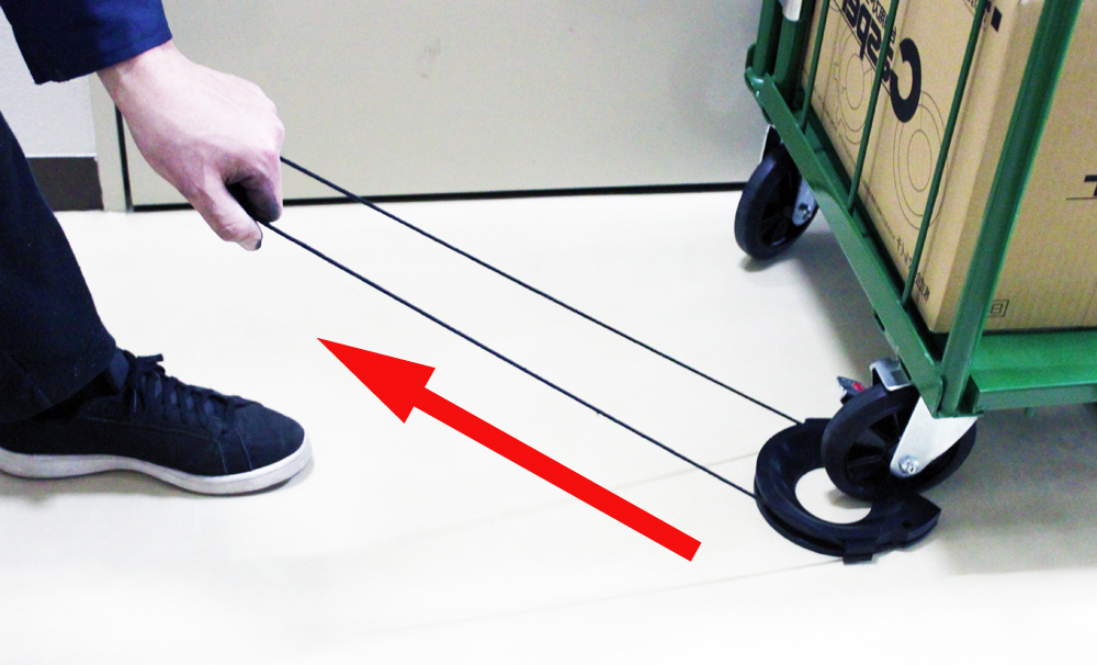 キャスターの近くにCフックを設置することで、紐をフックに掛けることが出来るため、取り回し性能が向上します。また、台車とキャスパーをひとまとめに管理することができるので、現場での紛失防止にも効果的です。キャスパー3rdのセット商品として、是非「Cフック」の採用をご検討ください!