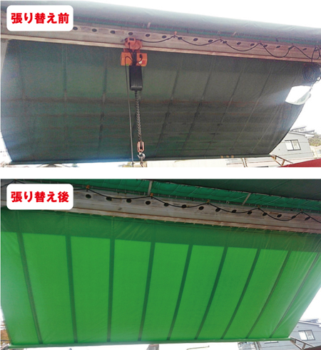 株式会社マスカワ様からのご依頼でテント張り替え工事を行なった事例です。